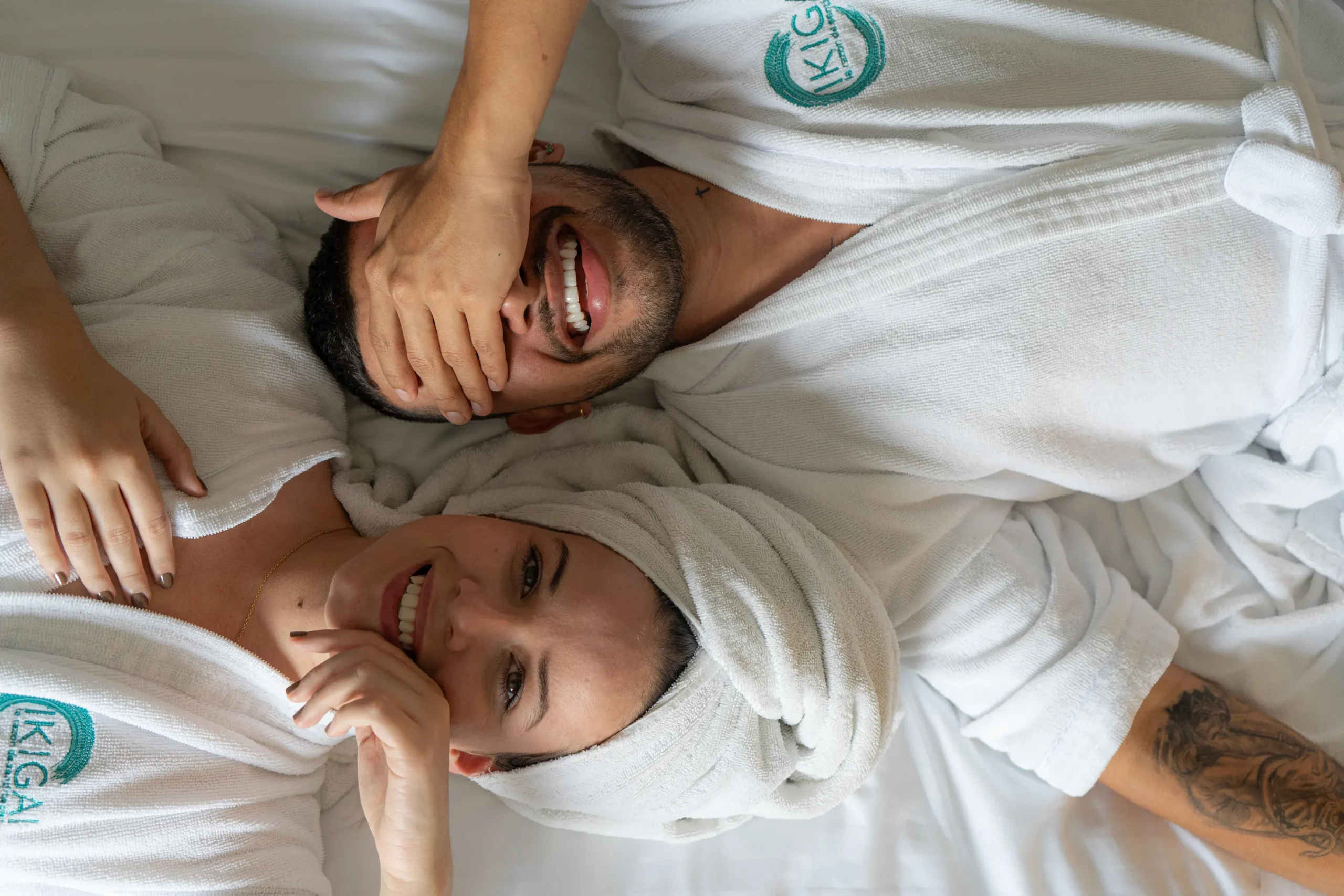 Disfruta una experiencia Spa para dos: Reservamos la sala de masaje Dúo, allí recibirán el siguiente protocolo: